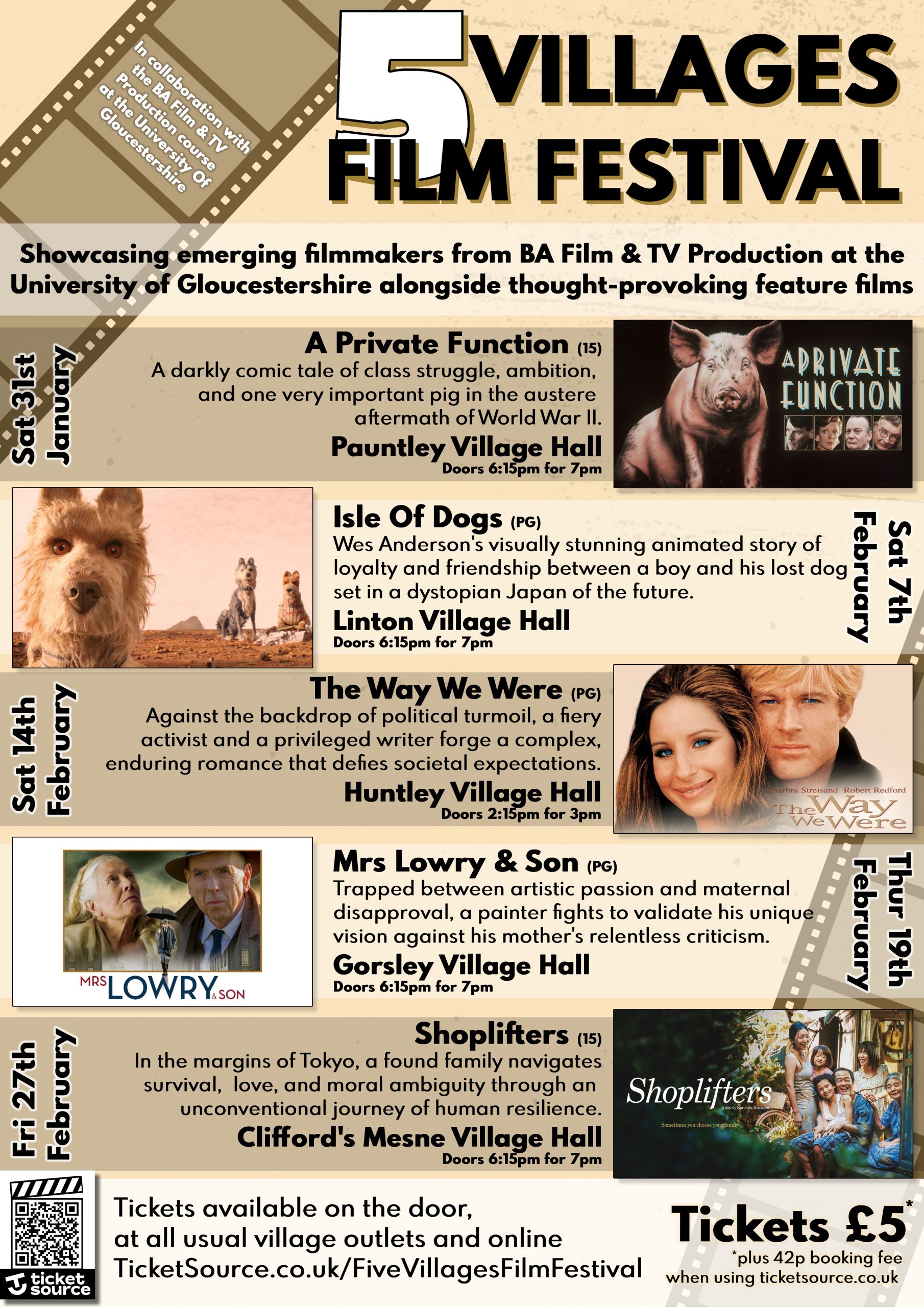 To be certain of a ticket, please book in advance online usingTicketSource.co.uk/FiveVillagesFilmFestival,